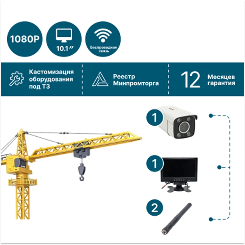 Беспроводной Full HD монитор с диагональю экрана 7 дюймов отображает получаемую с камеры заднего вида картинку максимально четко и ярко, идеально подходя для использования на башенном кране. Корпус монитора выполнен из пластика классического черного цвета. Антибликовое покрытие и солнцезащитный козырёк гарантируют хорошую видимость изображения даже в самые солнечные дни. Камера синхронизируется с монитором без проводов, что упрощает монтаж и эксплуатацию.