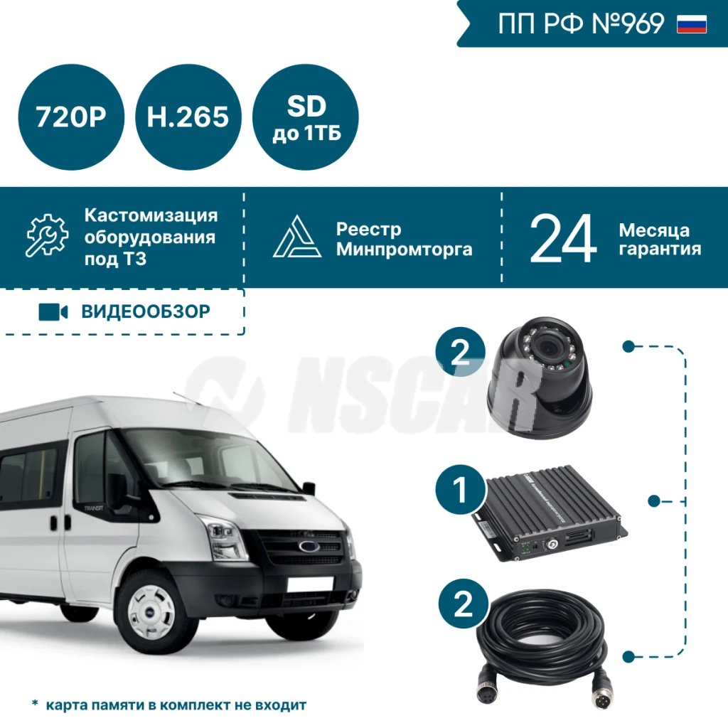Комплект видеонаблюдения для грузового транспорта на 2 камеры NSCAR GT201_SD